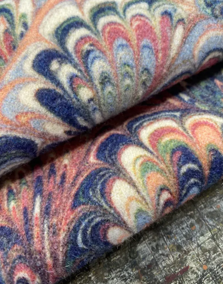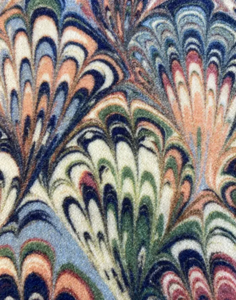 Our Serpentine pattern is based on perhaps one of the most iconic and recognizable marbled designs, most often referred to as ‘Peacock’ or ‘Bouquet. Originally first created at the end of the 19th century we’ve modernized this pattern by incorporating a rich palette and enlarging the scale.