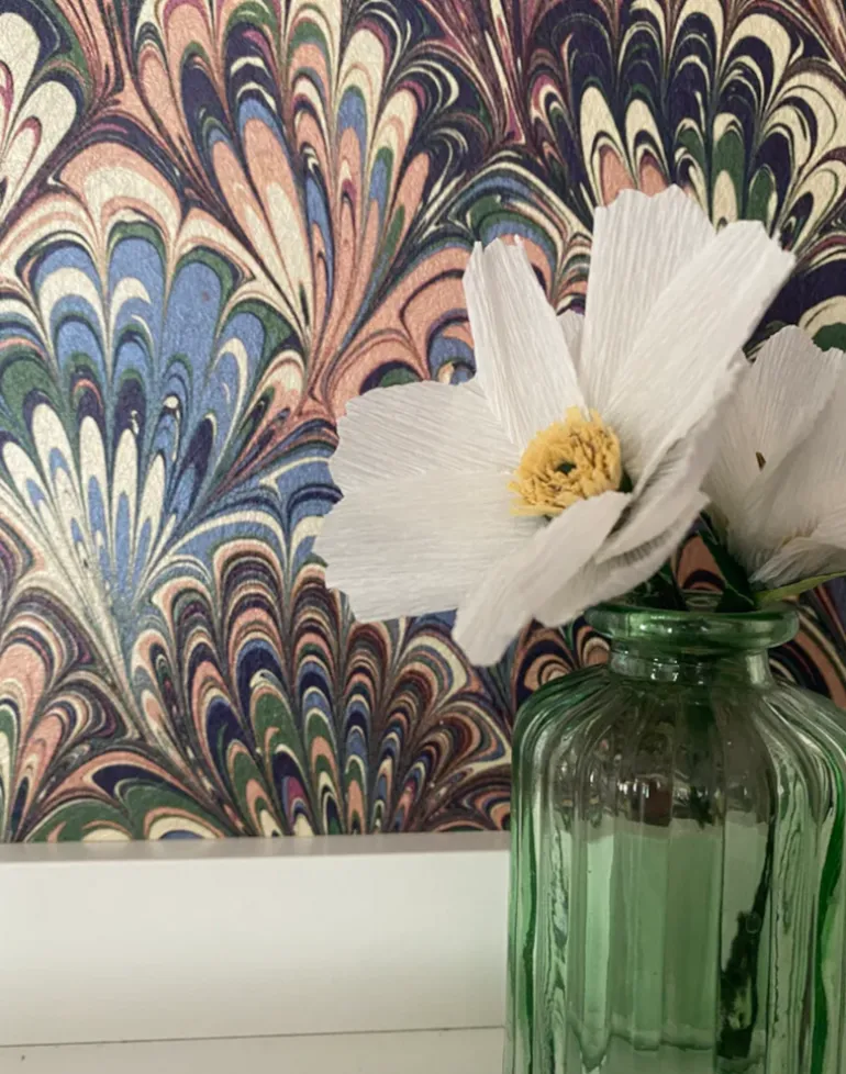 Our Serpentine pattern is based on perhaps one of the most iconic and recognizable marbled designs, most often referred to as ‘Peacock’ or ‘Bouquet. Originally first created at the end of the 19th century we’ve modernized this pattern by incorporating a rich palette and enlarging the scale.