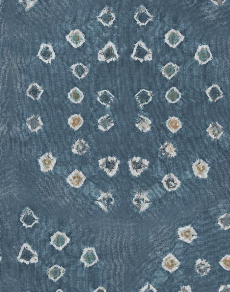 Featuring a shibori dye pattern taken from an original indigo-dyed silk fabric created by Poppy founder/designer Jennifer Hunt: