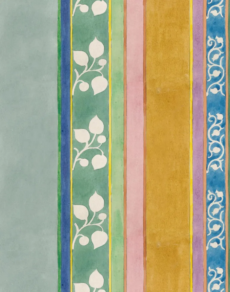 Our Silk Stripe wallpaper is from a 1918 design for a woven silk by C.F.A Voysey found in the V&A Museum archives. The story of silk is both of splendor and the everyday: its origins are in ancient China, where it was initially reserved for the Emperor but later was used for items including paper, fishing lines and canvas for painting. It was kept a precious secret before being smuggled out and subsequently traded on the infamous Silk Road. What was once a functional material became a commodity coveted the world over.