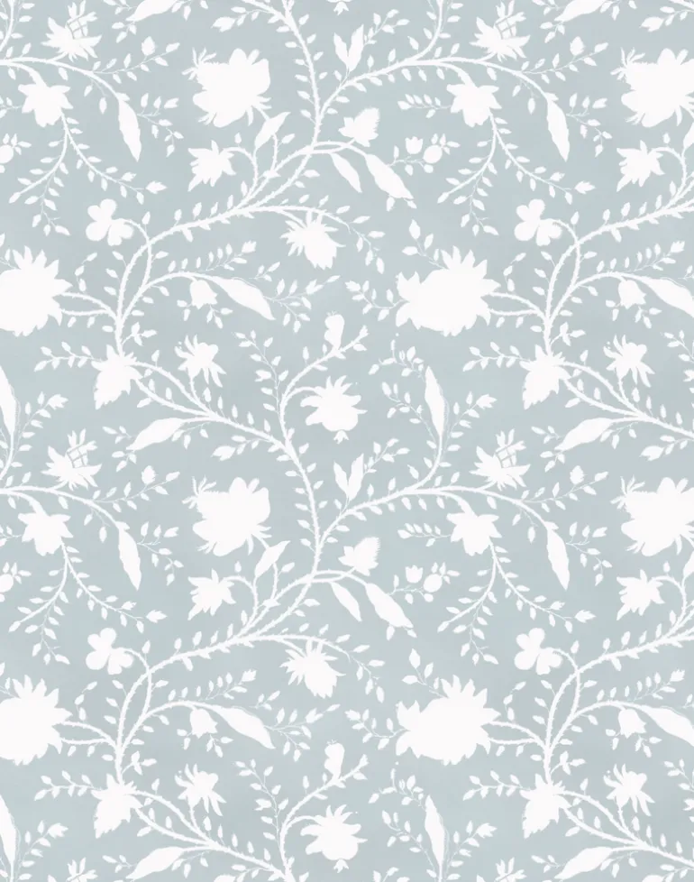A beautiful floral wallpaper full of movement in a delicate dance of vintage blooms. This Indienne based wallpaper in an aqua colourway is light and dreamy. Although this version is essentially a blue, there is an undertone of green and dusk in the background, making it fresh yet peaceful.