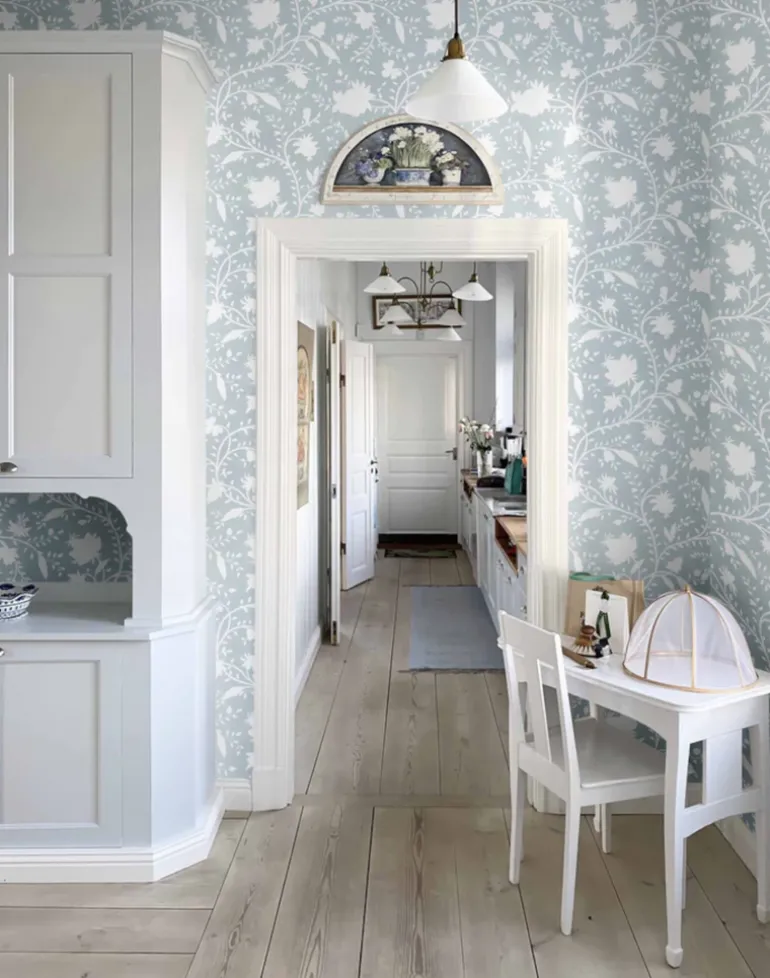 You’ll find both elegant, bold statement colors and delicate details throughout her designs, which have mainly been inspired by vintage prints found rummaging in antique shops around the world. Wallpaper are designed and printed in the UK and Sweden and all the raw materials to are sustainably sourced and made in Europe.