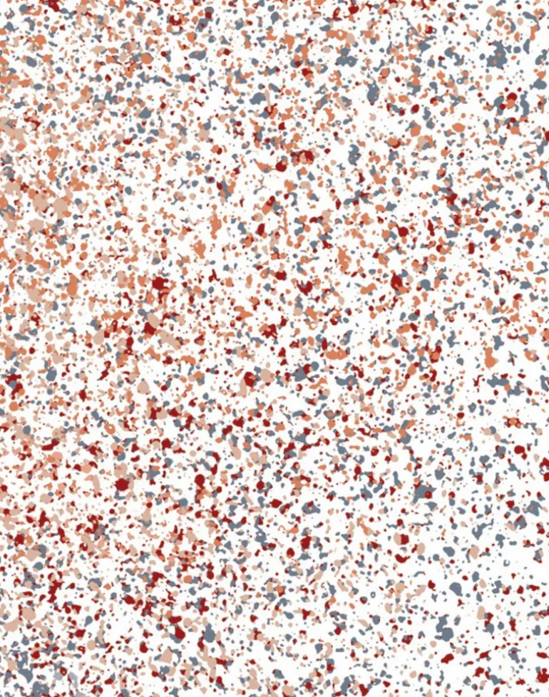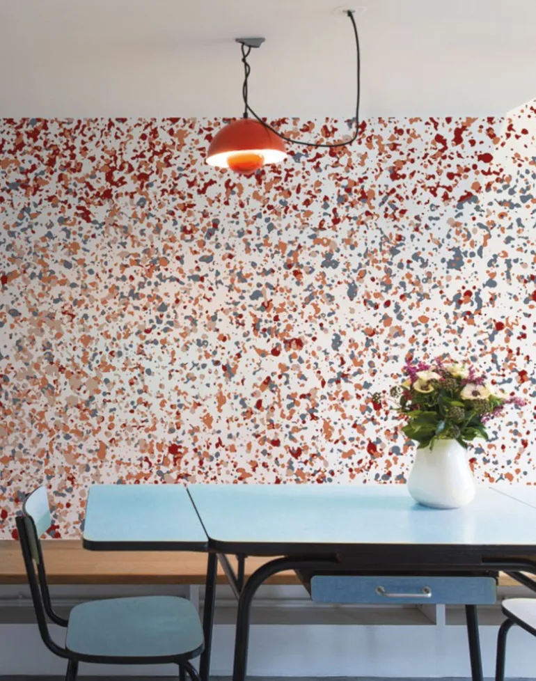 Stardust offers a speckled decoration between Pollock and the Milky Way. For “Marie Claire Maison”, Cécile Figuette gives a new take on her “Pollockian” design, choosing very popular tones of terracotta as the dominant colors, counterbalanced by a very pale blue. A winning combination!