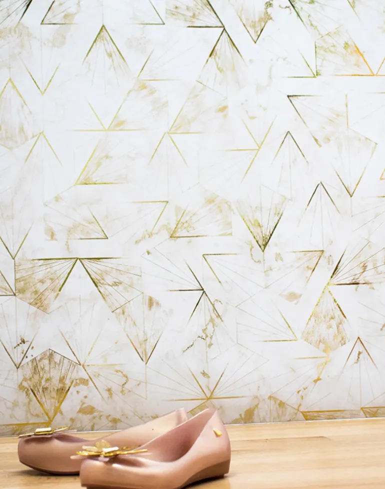 • Our Chroma substrate is a high-performance wallcovering media with a highly reflective surface to achieve incredible mirroring effects in our designs. A 1” overlap is designed into all rolls that can be trimmed if desired.
