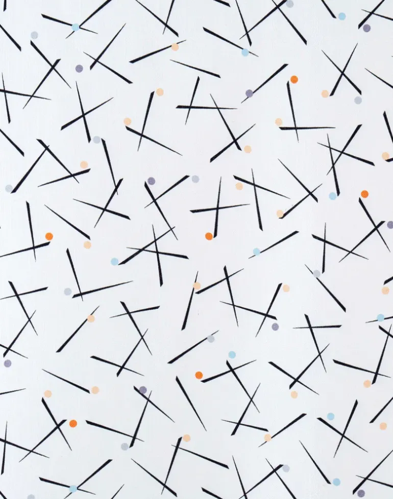 This beautiful Sticks fabric is part of our Archive Collection and is based on a simple French shirting fabric design from the late 1880’s. It could be depicting sewing pins or taking inspiration from botanical texts and illustrations, either way it is lively and elegantly striking.