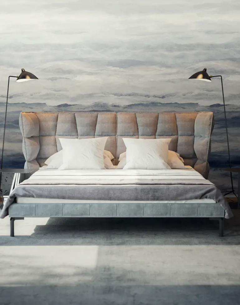 Stira’s Hand depicts a body of alluring mythical landscapes across a series of large-scale wallcoverings. Encompassing the three elements – Land, Sky, and Sea, these beautifully painted scenes furnish boundless imagination into any interior. Brought to life with impeccable British craftsmanship, Stira’s abstract brush strokes and subtle pigmentations are presented on our finest fibrous parchment, creating an authentic textured backdrop reminiscent of the artist’s canvas. Indulge your imagination across four vivid colorways, Stratum, Horizons, Changing Tides (+ Ombre Edition) and Nightfall (on Silver Mica).