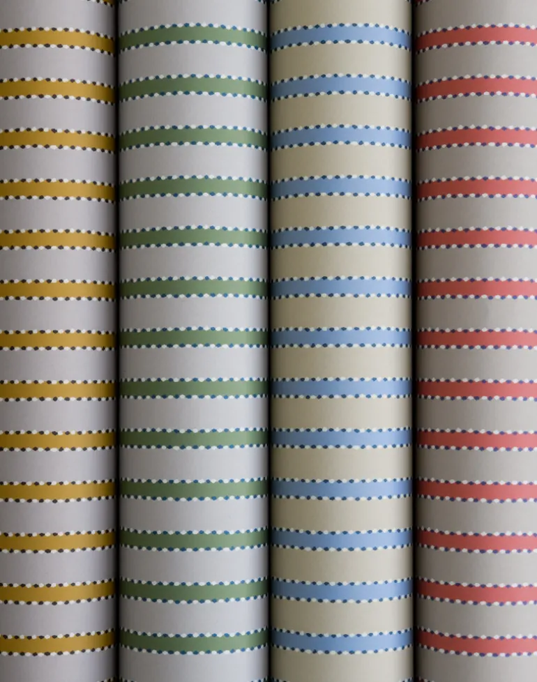 With inspiration from hand tacked textiles the ’stitches’ gives an edge to the stripes in this design.