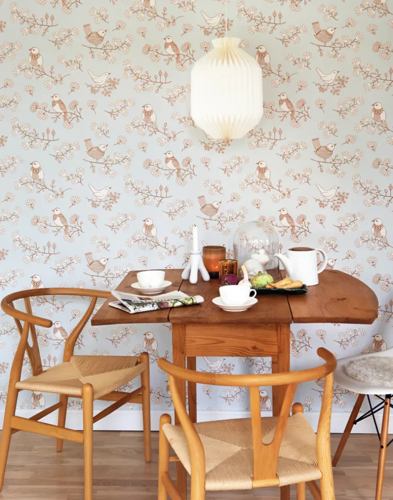 The wallpaper is made in Sweden and printed on non-woven material with colors that are water-based and completely free from solvents and PVC. Excess color is managed in an environmentally sound manner and paper waste is converted into heat. The wallpaper has a very beautiful surface where you can feel the color structure with the bare hand.