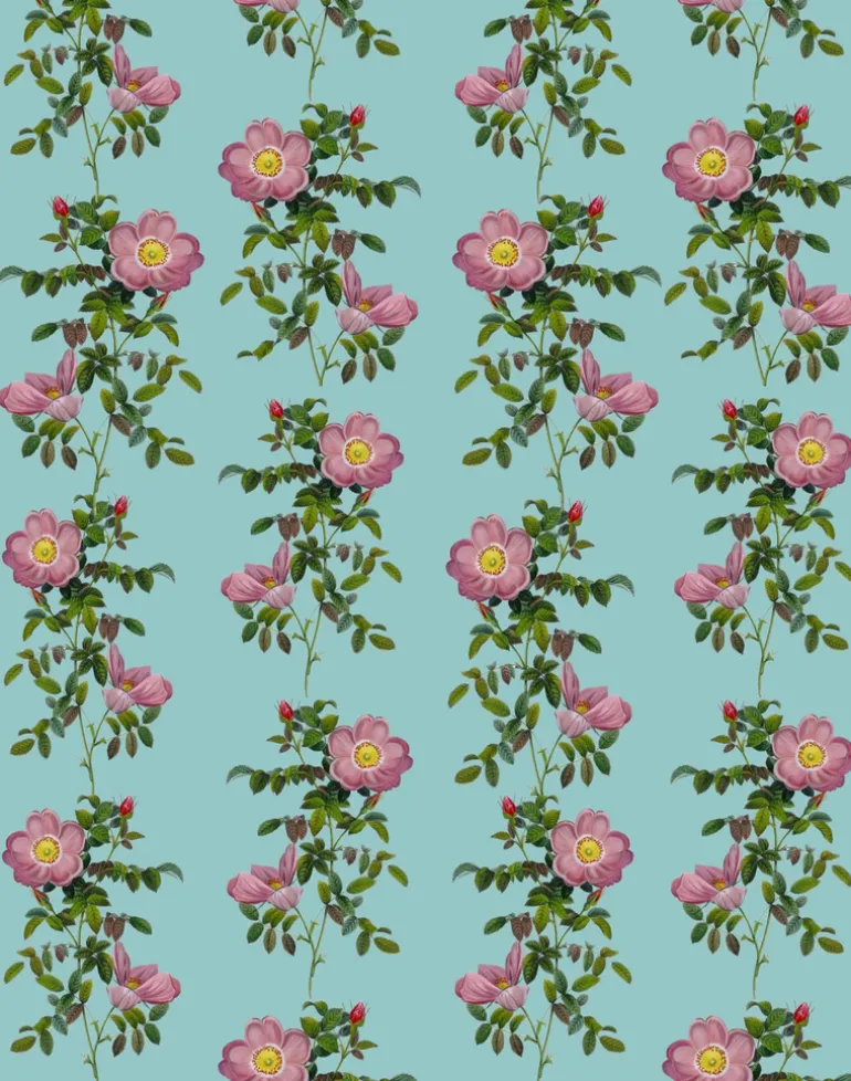 The delicate rose is patterned into a vine, making a whimsical stripe wallpaper that is both florally feminine and yet has a contemporary quirky vibe. This wallpaper comes in a lush collection of colors which will work in a bathroom, dressing room, office, hallway and really anywhere you want to create an atmosphere of dense beauty and delicate WOWness.