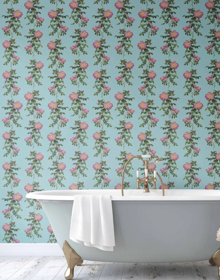 You’ll find both elegant, bold statement colors and delicate details throughout her designs, which have mainly been inspired by vintage prints found rummaging in antique shops around the world. Wallpaper are designed and printed in the UK and Sweden and all the raw materials to are sustainably sourced and made in Europe.