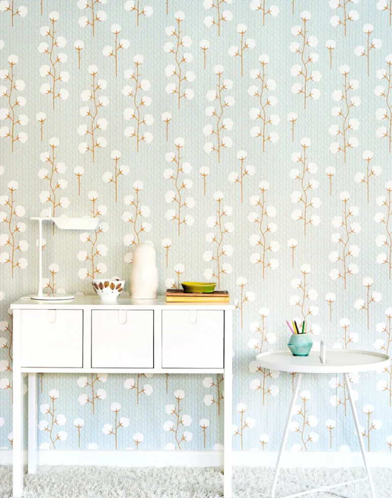 The wallpaper is made in Sweden and printed on non-woven material with colors that are water-based and completely free from solvents and PVC. Excess color is managed in an environmentally sound manner and paper waste is converted into heat. The wallpaper has a very beautiful surface where you can feel the color structure with the bare hand.