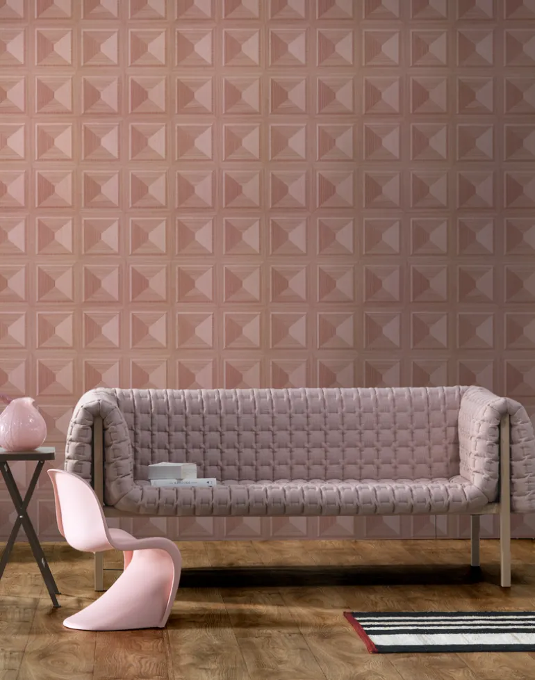 • Heavy-duty wallpaper with paper top-layer and non-woven backing. Glue is applied to wall