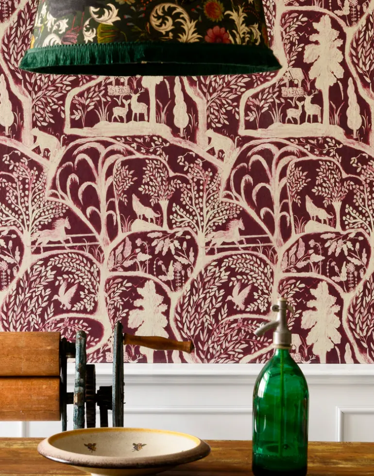 Each elegantly drawn element fuses with every wild epitomized creature in this detailed wallpaper, to embody the comprehensive, yet mysterious cast of Transylvanian woodlands. A stunning hand drawn wildlife illustration available in shades of abounding green and overcast red.
