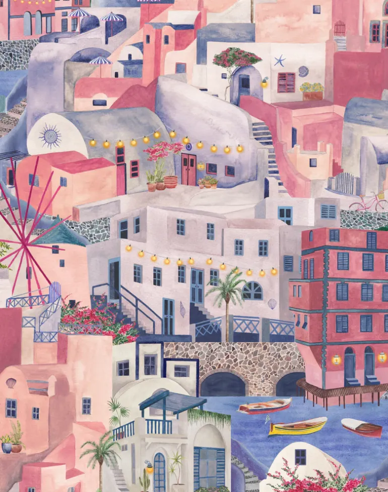 Transport yourself into the beauty of our hand-painted Mediterranean scenery, where every stroke transports you on a holiday escape. Capture a stunning hillside view with cobbled streets and steps, evoking memories of a cherished vacation spot or kindling anticipation for a future travel adventure.
