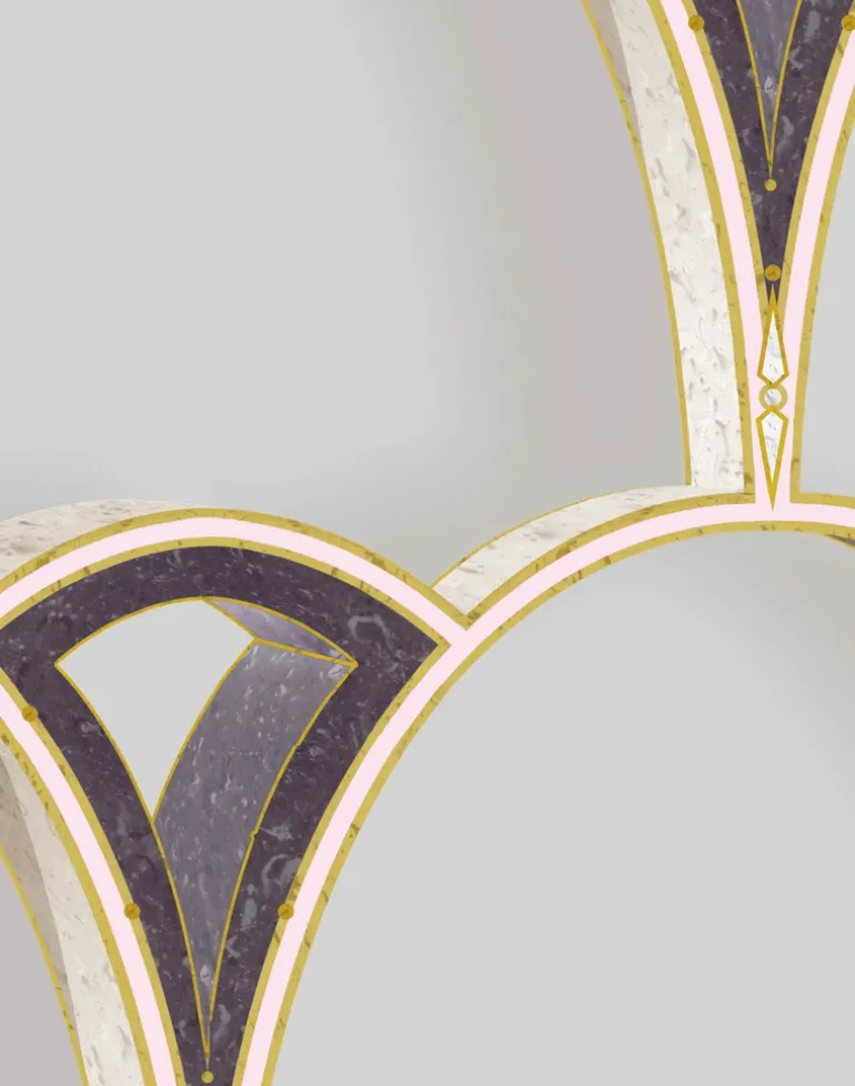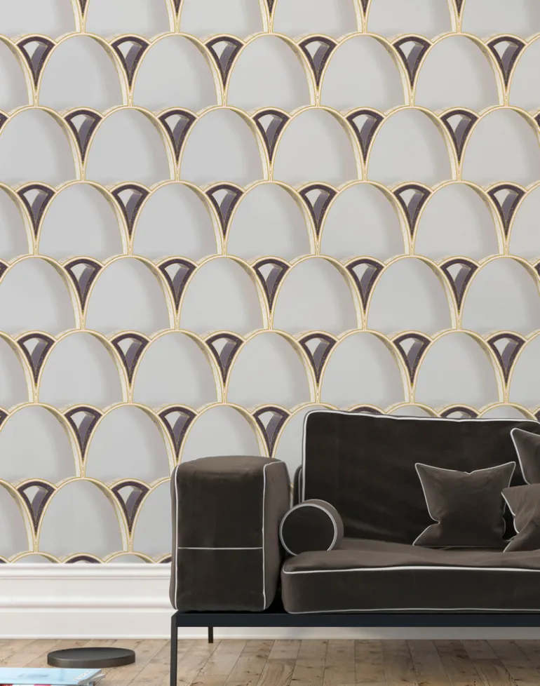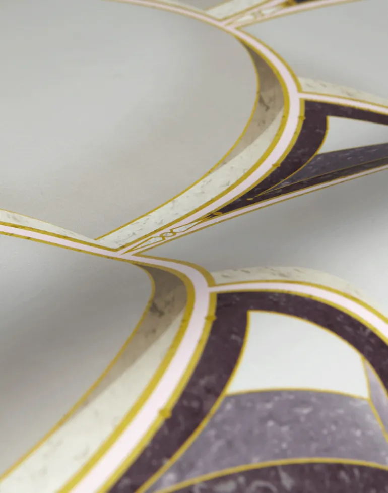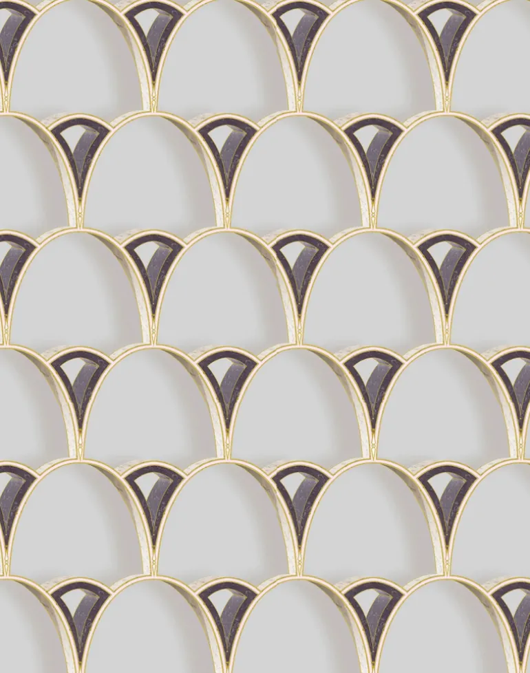 Tiber Archways is a modern resituating of ancient Roman architecture. Classical arches structure an undulating, geometric repeat, the deft use of shadowing convincing the eye of its three-dimensionality. Inspired by the marble quarries that lie just outside of Rome, the shapes read as though carved from this coveted material, their subtle veining and gentle coloration creating a trompe l’oeil effect. This clean, striking rendering of the classical speaks to the studio’s passion for resetting traditional design in contemporary terms, working to imbue a modern scheme with a sense of timelessness, or to sharpen a traditional scheme with a modern edge.