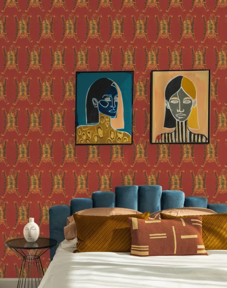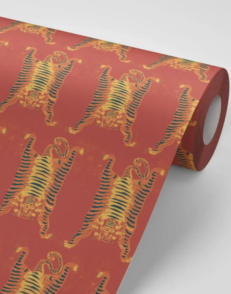 Tigers are endlessly fascinating, with their lithe elegance, fierceness and strength. Invite the tiger’s power into your home with this Tibetan – inspired print. This pattern brings a playful element to any room while honoring the traditions and strength associated with the tiger in Tibet. Be bold, be daring and embrace the power of the tiger in your home.