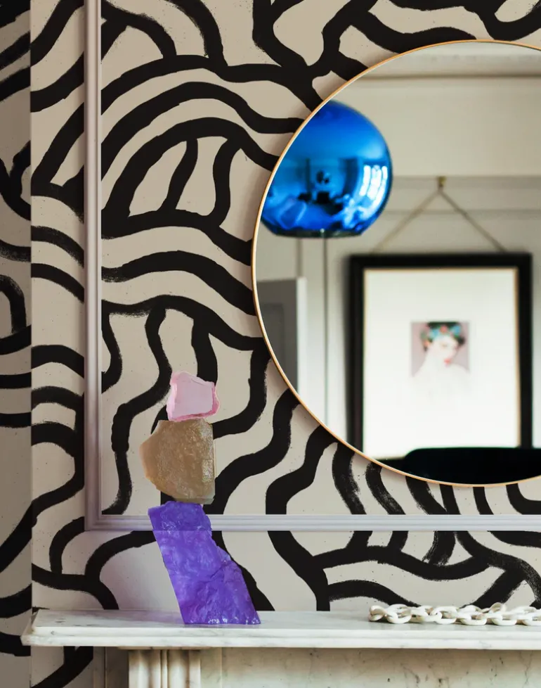 Organic lines weaving over and under, hand drawn, then hand printed for a textural and finely crafted finish. Available in a carefully curated palette of muted pastels and rich accent hues. Inspired by 80’s decor with an edge of contemporary design. Designed to be used collectively throughout interior spaces to create through line and joyful impact.