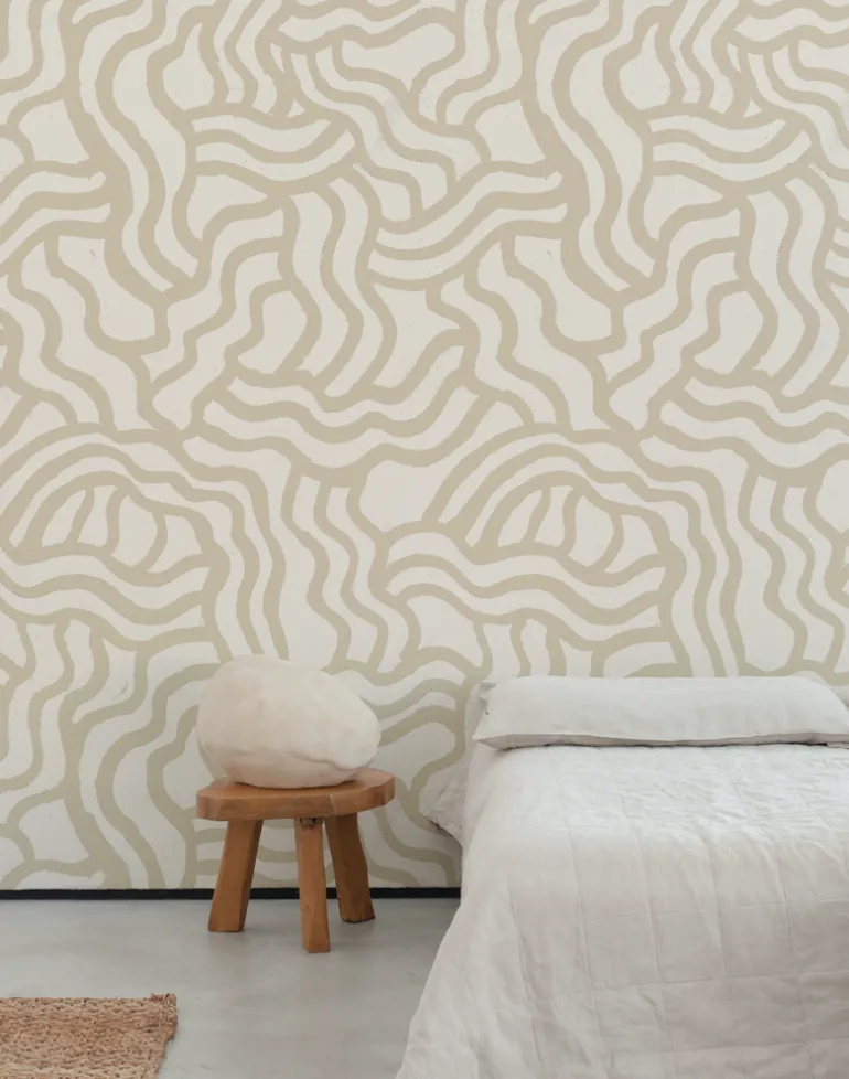 Organic lines weaving over and under, hand drawn, then hand printed for a textural and finely crafted finish. Available in a carefully curated palette of muted pastels and rich accent hues. Inspired by 80’s decor with an edge of contemporary design. Designed to be used collectively throughout interior spaces to create through line and joyful impact.