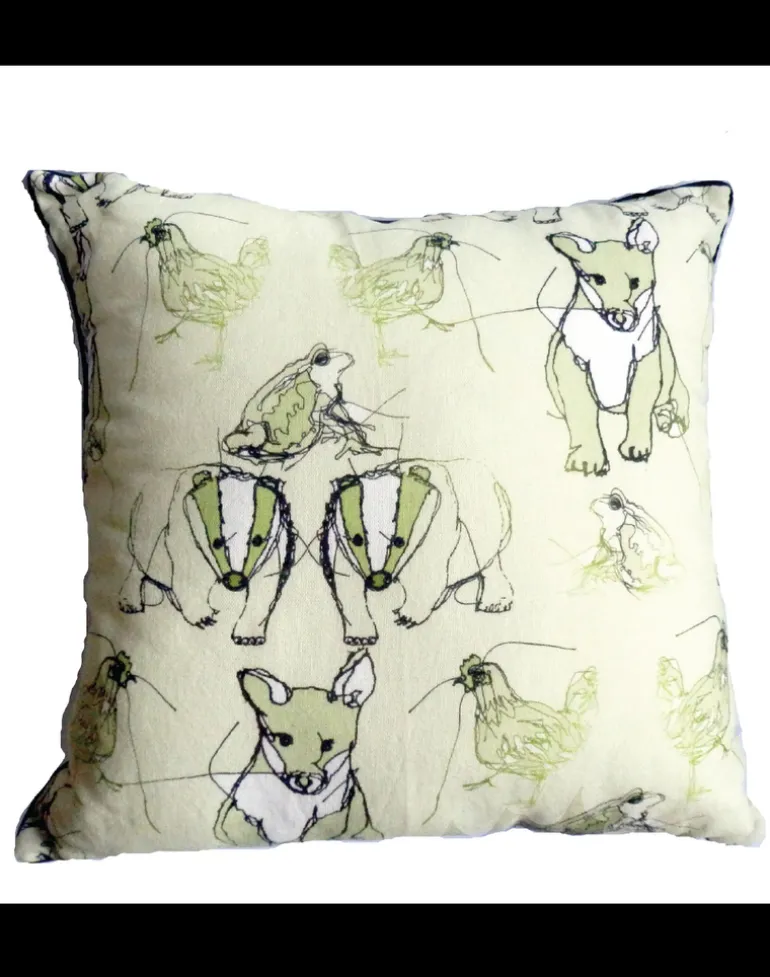 Tina, the amazingly talented illustrator behind Tobyboo, brings to life stories and London imagery on home accessories including cushions, kitchen textiles and blankets using freehand machine embroidery that has been screen printed to fabrics. She creates thread drawings that are beautifully original and made even more special because, “I don’t drawn them out before I use the needle of the machine as my pencil, so every mistake is captured to add charm and personality rather than rubbed out or started over”.
