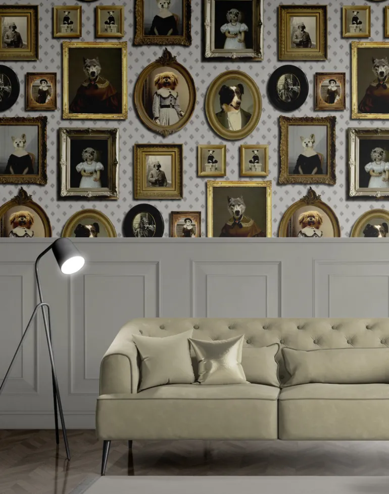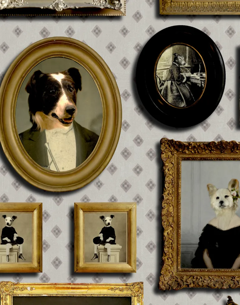 The designer, Charlotte Cory, admits she could never live without a dog, or two, or three. Life is simply not long enough to enjoy these wonderful creatures (Charlotte is never less than over-enthusiastic!). So what can be better than a wall full of them! And not just any dog – top dogs! Canines who have had their likeness captured by top portrait artists (like Charlotte Cory herself!). Cave canem! said the Romans. Beware of the dog. Beware of all these gorgeous creatures – you will fall in love and never be able to live without them.