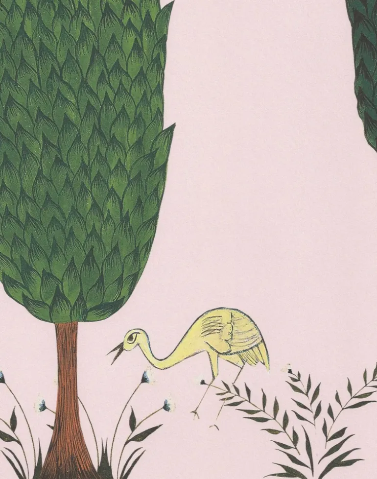 Immerse yourself into the magnificence of the cypress trees and migratory cranes, intricately painted Tranquility design by Shweta using heritage painting techniques creating a tranquil ambience.