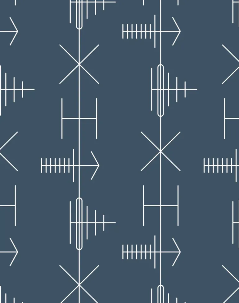 White illustration on blue background