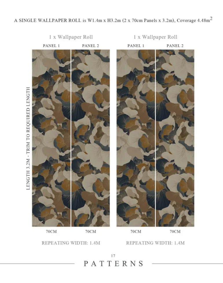 • Repeat: Multiple rolls can be joined together to extend across any wall width and trimmed to the required height.