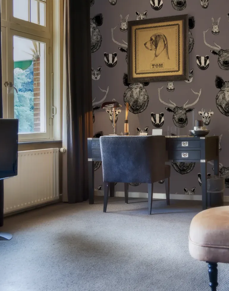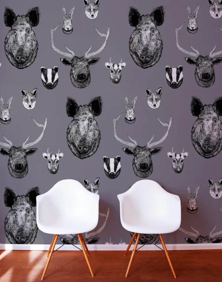 “From ancient deer to a rather dashing wild boar all are here on this Vestige wallpaper design from Lisa Bliss that features native British animals on a rich grey color background. Intricately hand drawn British beasts that would have commonly dressed the walls of our past aristocracy can now adorn the walls of your lodge or city pad with our modern take of a bygone era.”