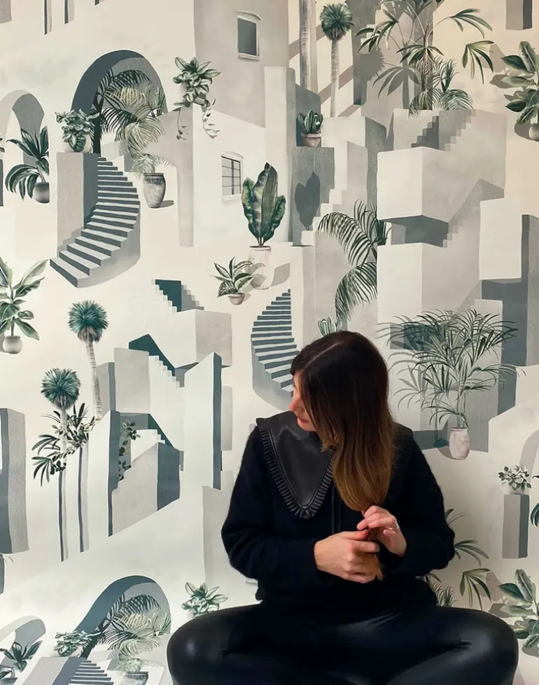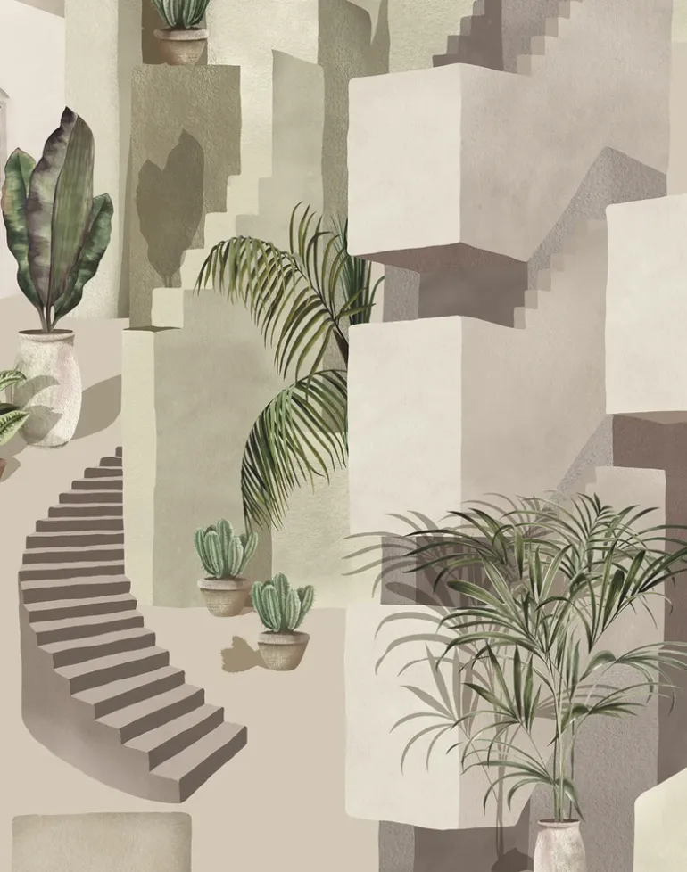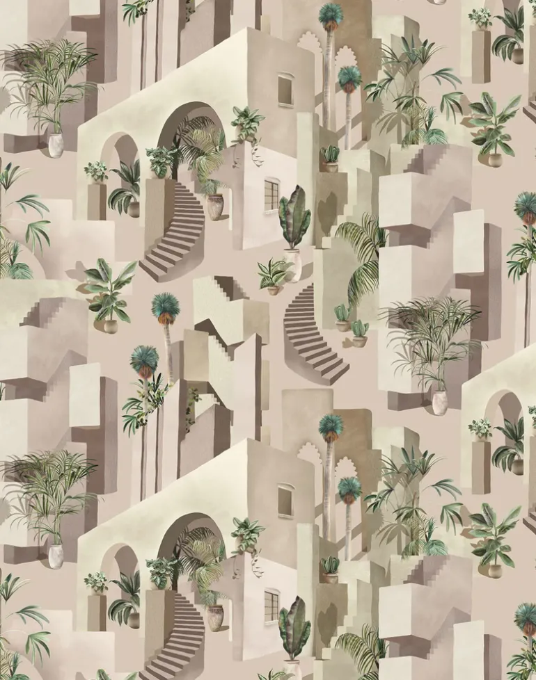 17 Patterns’ Villa No.17 is the latest and largest scale wallpaper design to date. Inspired by the joy of travel, this adventurous panel set creates maximum impact with its impressive 210cm width repeat. With a nod to Post modern architecture, Villa No.17 is a settlement with juxtaposing towers, grand porticos and sweeping staircases offset by lush tropical planting. Creating a Utopian townscape that will set you off on a path of discovery, evoking that coveted holiday feeling. Imagined in 4 inspired colours from some of our favourite holiday destinations, Villa No.17 transports you to your ideal vacation hideaway from the very comfort of your own home, all year round.