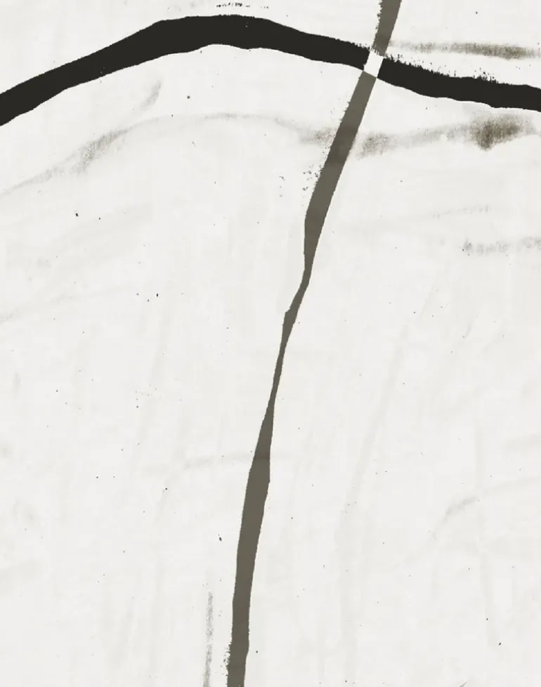 A painted background of earthy hues reveals lines weaving up, down, and across the surface.