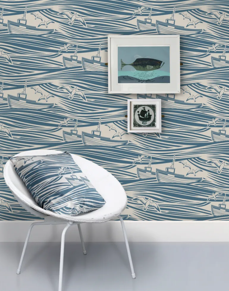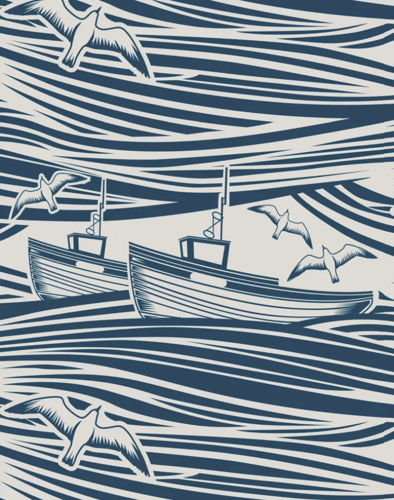 Inspired by 1950s linocuts, the bold wave motif of our Whitby design captures the majesty of the open sea.