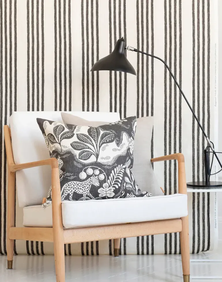 Wild at Heart is drawn by hand and printed by our Master printers on our beautiful and sustainable high quality linen weave, which is lively and make our patterns age with grace.