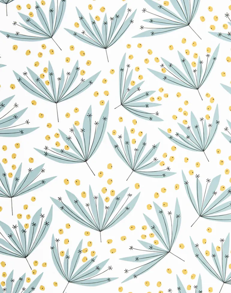 Inspired by energetic wild flowers in full bloom, uncultivated and growing freely, Wildflower offers a decorative twist on modern botanical design. Radiating from a palette of mustard yellows, sage greens, deep blues and hints of coral, the playful pattern fills interiors with both color and life.sign.