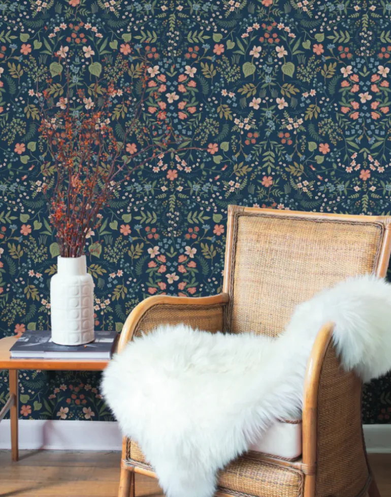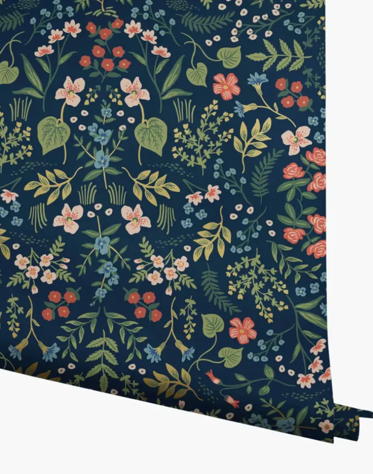 Wildwood is a deliberately-placed pattern of wildflowers and greenery, creating a detailed, natural floral design, inspired by antique botanical drawings. This wallpaper is screen printed and comes in 27 inch rolls with a 25.25 inch repeat