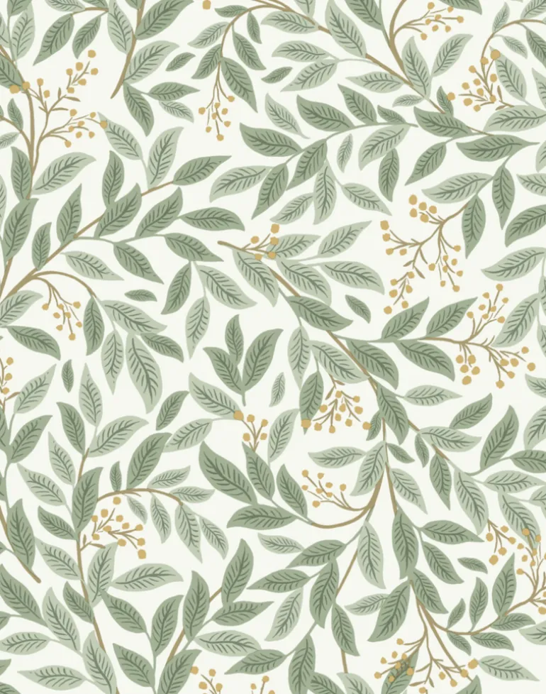 Lush and verdant, Willowberry features vines of greenery that are dotted with metallic berries.
