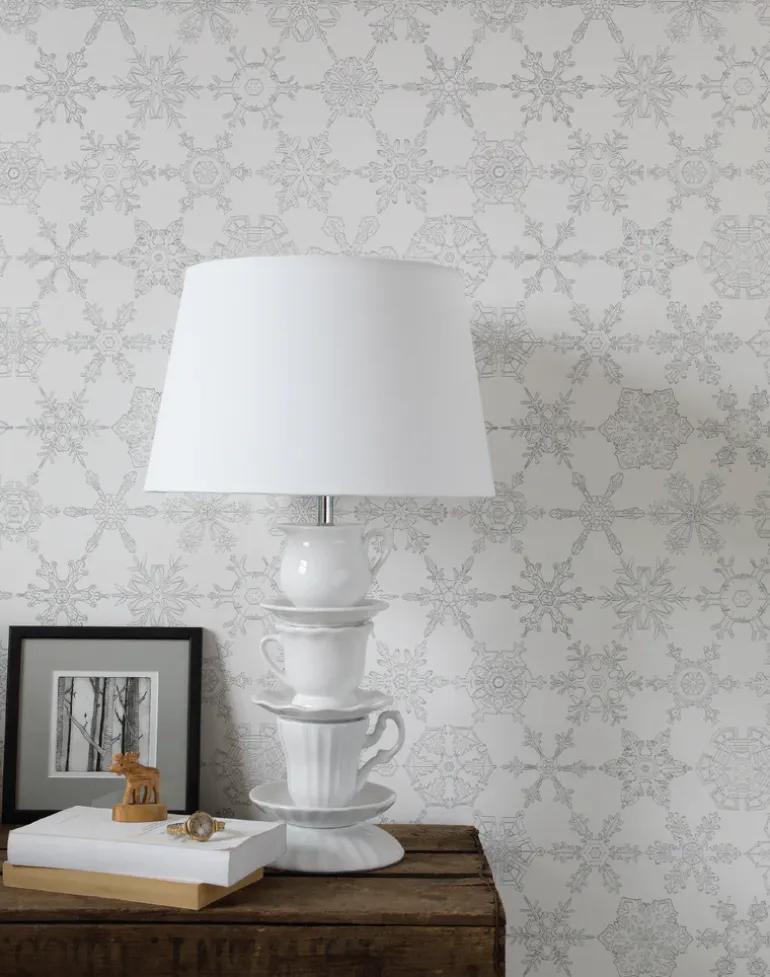 Wilson’s Crystals is an intricate hand drawn design featuring thirty different snowflakes, each one drawn individually and arranged into a graphic retro pattern. Inspired by the remarkable work of Wilson Bentley who dedicated almost fifty years to photographing more than 5000 snowflakes and made the discovery that no two snowflakes are alike.