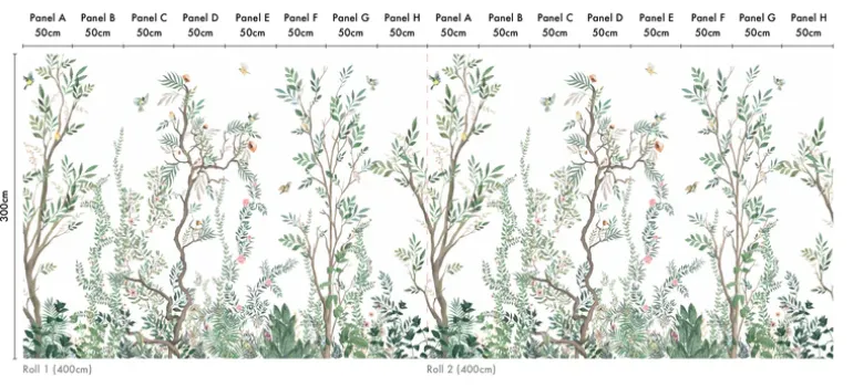 • Panels line up to create pattern, rolls match seamlessly. Pattern can be hung in either direction.