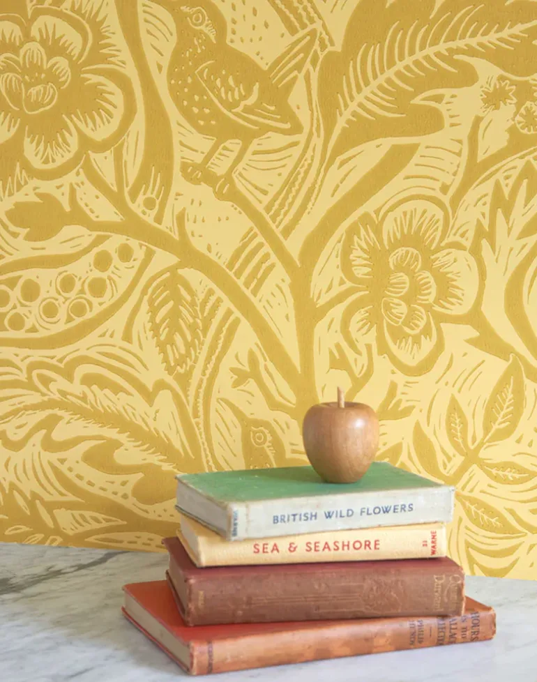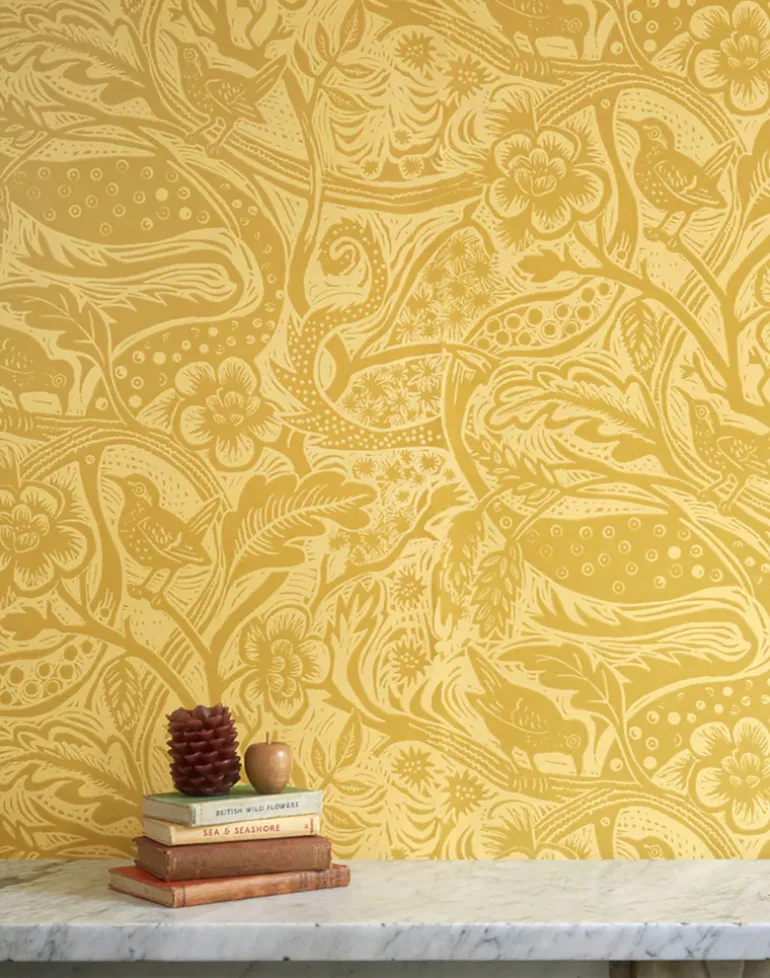 This design originates from an original linocut by Mark Hearld and as with many St. Jude’s designs the texture of these hand printed elements may well be reflected in this wallpaper. ‘Wren’ by Mark Hearld is a single color wallpaper, printed in the UK.