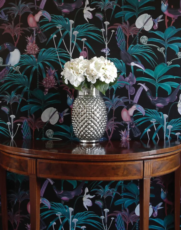 A love of painting birds, animals and flowers and a longstanding love of wall-murals and the ‘maximalist’ wallpapers and fabrics often found in stately homes and palaces inspired Helen to use her skills of fine and detailed painting to design ‘Amazonia’, the first elaborate design for Witch and Watchman. Looking to create designs that resemble a modern take on Chinoiserie, Witch and Watchman is about bold prints that make a statement.