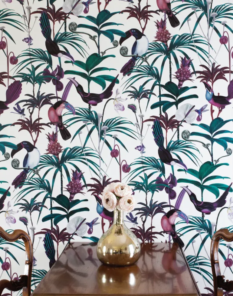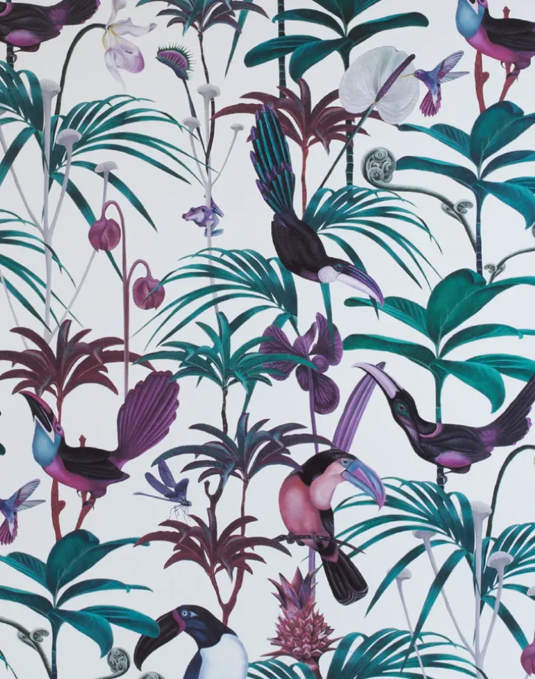 A love of painting birds, animals and flowers and a longstanding love of wall-murals and the ‘maximalist’ wallpapers and fabrics often found in stately homes and palaces inspired Helen to use her skills of fine and detailed painting to design ‘Amazonia’, the first elaborate design for Witch and Watchman. Looking to create designs that resemble a modern take on Chinoiserie, Witch and Watchman is about bold prints that make a statement.