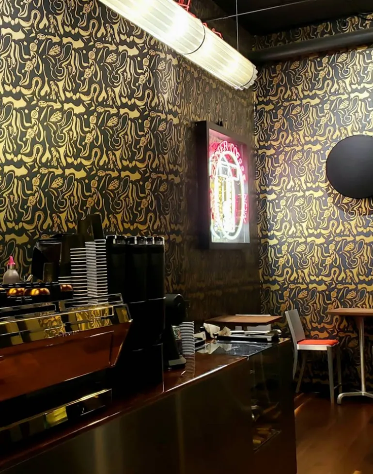 Metallic gold detail with black outline on ivory background