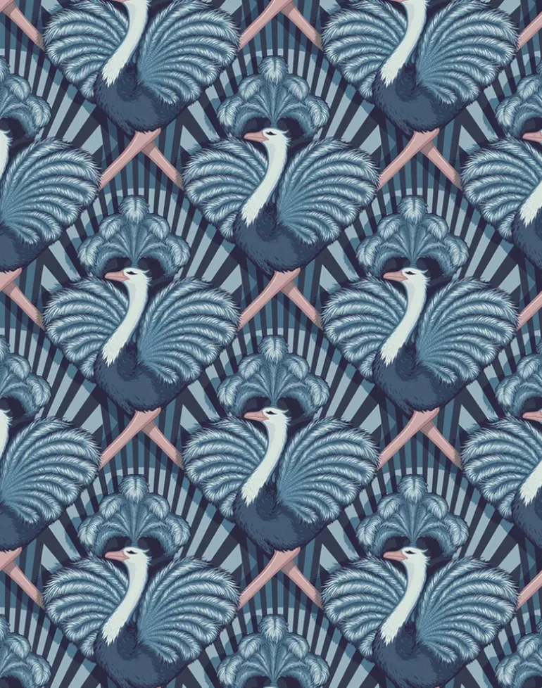 A stunningly flamboyant design that conjures the Golden Age of Hollywood and the iconic motion pictures of Fred Astaire and Ginger Rogers. Our glorious ostrich showgirls display their beautiful feathers as they dance across the stage in glorious Technicolor formation.